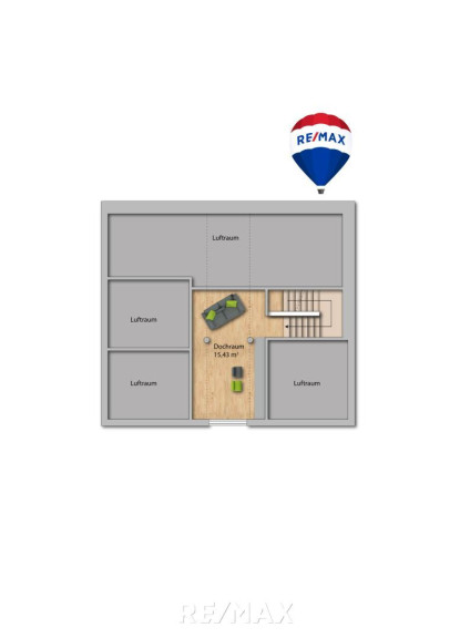 Im Dachgeschoß befindet sich ein weiterer Raum mit knapp 15,5 m², perfekt für kreative Nutzung wie Fitness, Bibliothek oder als Home-Office