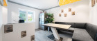 Das Erdgeschoss besticht durch ein lichtdurchflutetes, sehr großes Wohnzimmer, das als zentraler Treffpunkt für die ganze Familie dient. Im direkten Anschluss befindet sich ein gemütlicher Wintergarten, der den Wohnraum erweitert und zum Verweilen mit Blick ins Grüne einlädt. Die voll ausgestattete Küche mit angrenzendem Essbereich ist ideal für gesellige Abende, während ein weiteres Zimmer flexibel als Büro oder Gästezimmer genutzt werden kann. Zusätzlich befindet sich im Erdgeschoss ein WC.