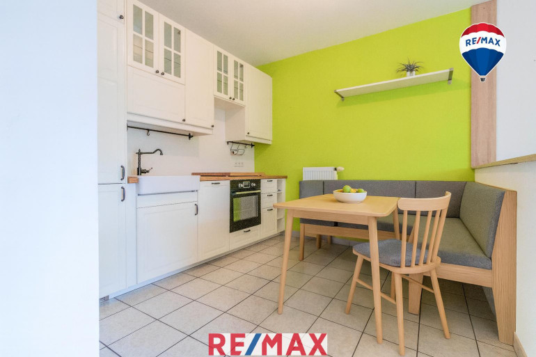 Die Ausstattung umfasst Laminatböden in den Wohnräumen, pflegeleichte Fliesen in Küche und Nassbereichen sowie Plissees und Insektenschutz an allen Fenstern. Ein ca. 9 m² großes Kellerabteil sowie ein zusätzlicher allgemeiner Kellerraum bieten praktischen Stauraum.