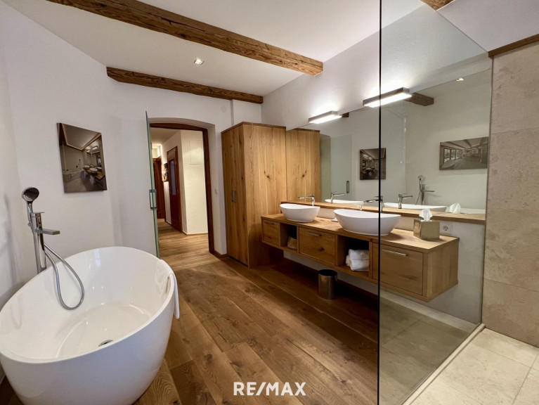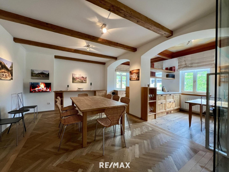 Nur wenige Schritte vom Zentrum Kitzbühels entfernt, erwartet Sie diese exklusive Wohnung in einem charmanten Haus mit nur zwei Wohneinheiten.