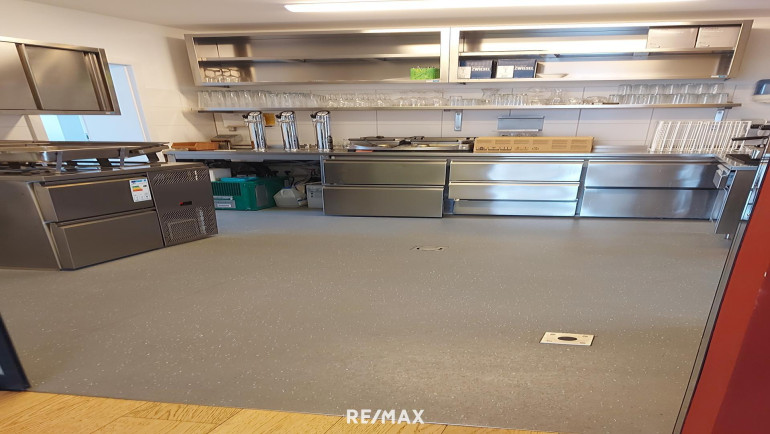 • Komplett ausgestattete Gastronomieküche mit allen Anschlüssen