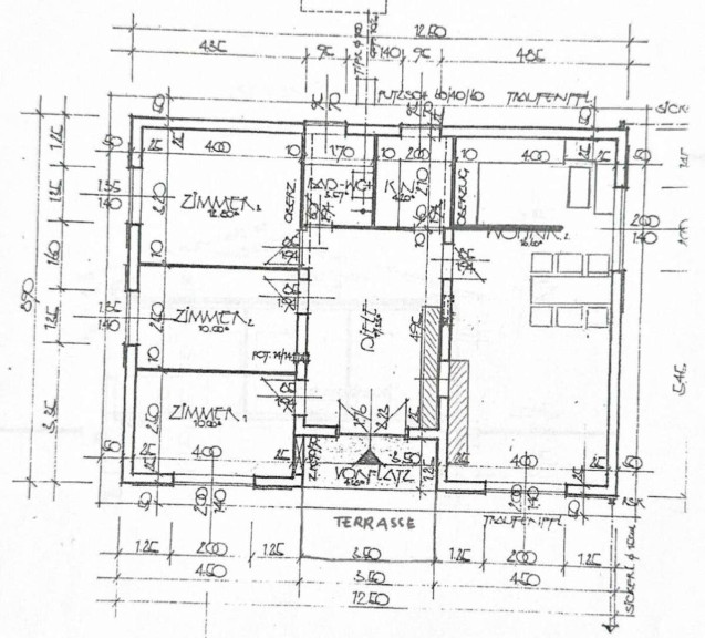 Zwischen Haus und Garage/Werkstatt befindet sich ein weiterer überdachter ca. 12m langer Abstellplatz für Fahrzeuge, Anhänger, Sportgeräte etc.