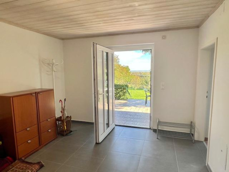 An die PKW-Garage angebaut befindet sich ein Raum zum Heimwerken mit hinterem Eingang.