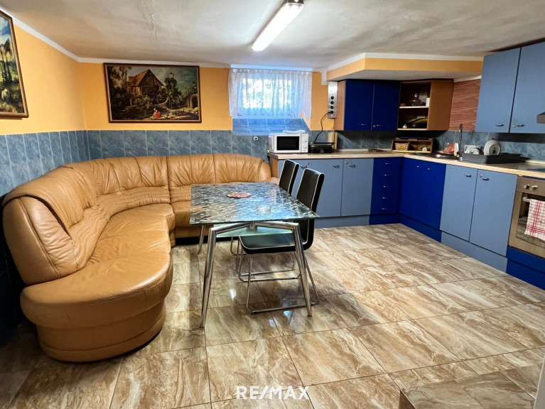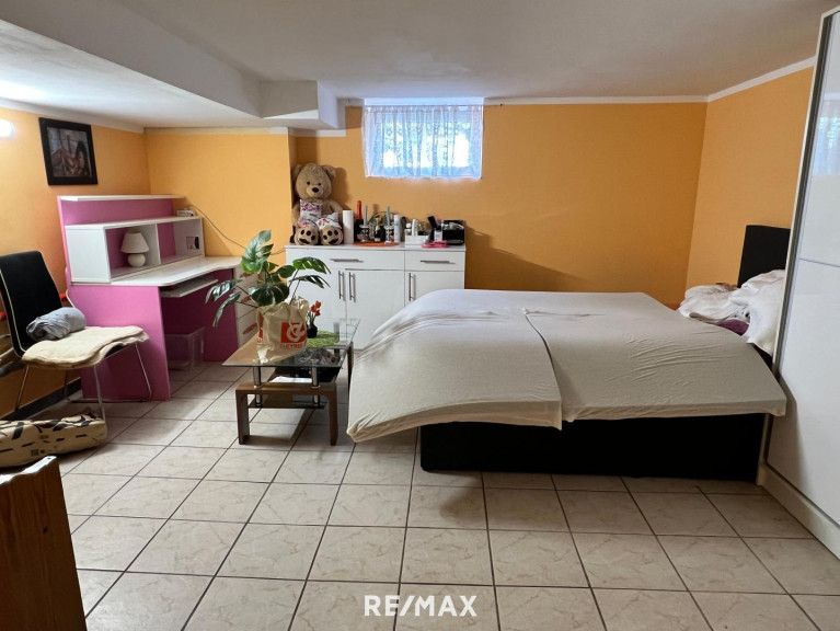 Im 67 m² großen Keller befindet sich ein großer Vorraum, ein weiteres (Schlaf-)Zimmer und eine voll-ausgestattete Küche.