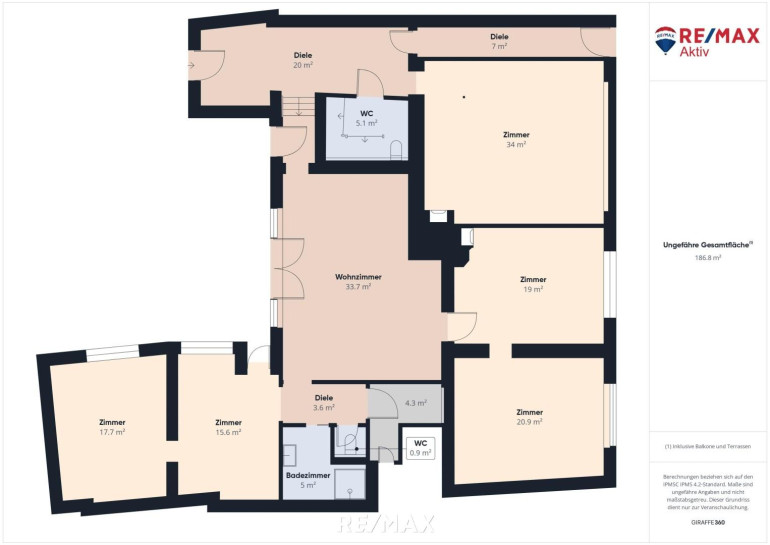 - 2 ausgebaute Zimmer im Nebentrakt (ca. 30 m²)