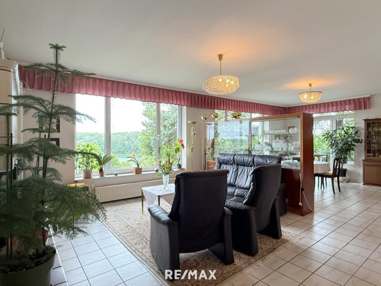 Der Blick schweift weit – über die Donau, über den bekannten Freizeitstrand von Altenberg und Greifenstein, das beliebte Ausflugsziel der Wiener. Hier oben ist man für sich. Und gleichzeitig mitten im Leben, wenn man es will. Der Blick ist allgegenwärtig: aus dem Wohnzimmer, vom Balkon im obersten Stock, aus nahezu jedem Fenster der Donauseite. Die Sonnenuntergänge? Legendär. Wer sie einmal erlebt hat, weiß, was gemeint ist.