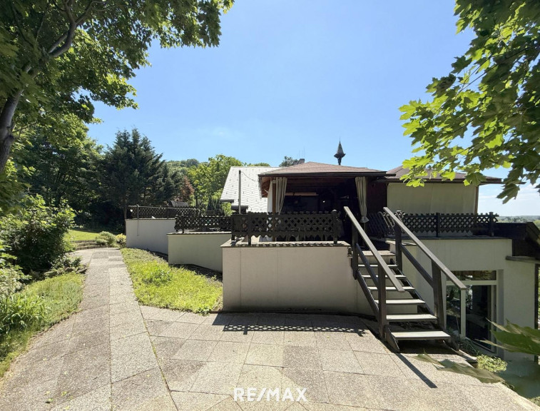 Das Grundstück selbst misst großzügige 2.750 m²- kleiner Wald inklusive – ein Paradies mit Terrassen, Rasenflächen, Blumeninseln, Rückzugsnischen.