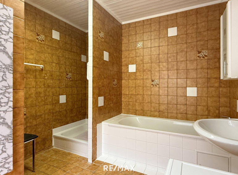 Das Badezimmer ist äußerst großzügig bemessen, mit Badewanne, Dusche und allem, was man braucht; das WC liegt separat. So bleibt morgens genug Raum für alle, ohne Hektik – ein Ort, der Funktionalität und Wohlfühlen vereint.