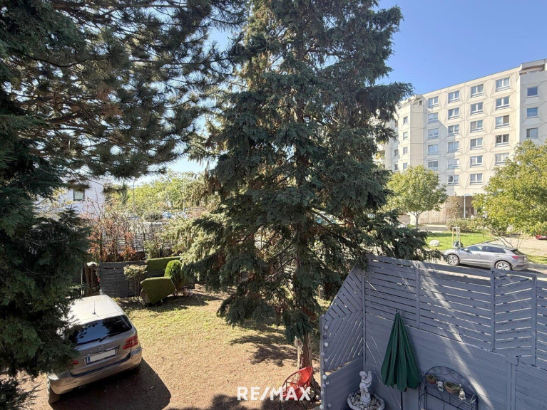 Dahinter und seitlich am Haus vorbei erstreckt sich der Garten – mit rund 258 m² Grünfläche, der mit Abstand der größte der Anlage ist, fast wie bei einem kleinen Einfamilienhaus. So zieht sich das Grün charmant ums Eck, bietet viel Platz, Privatsphäre und einen direkten Weg zurück zum Hauseingang. Ein schöner Altbaumbestand, sowie Pflanzen und Sträucher geben dem Garten Charakter und Schutz vor neugierigen Blicken. Ein Gartentor führt direkt auf die Straße – praktisch, denn man kann mit dem Auto gleich alles direkt ins Haus liefern.