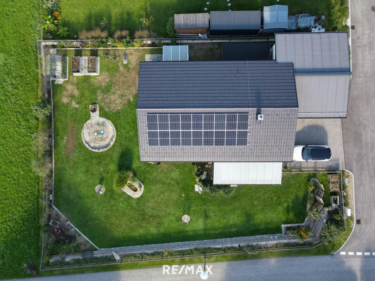 Das Gebäude wurde in energieeffizienter Holzriegelbauweise von Fa. Holzbaumeister Rauchenecker errichtet und verfügt über eine umweltfreundliche Luftwärmepumpe in Kombination mit komfortabler Fußbodenheizung, PV-Anlage mit Speicher und Notstromaggregat, was für ein angenehmes Raumklima und niedrige Betriebskosten sorgt. Eine Doppelgarage für zwei Autos ist ebenfalls vorhanden. Im Garten befindet sich zudem weiters eine Regenwasserzisterne mit 1.500 l Volumen und den Rasenschnitt erledigt ein Rasenmäher-Roboter.