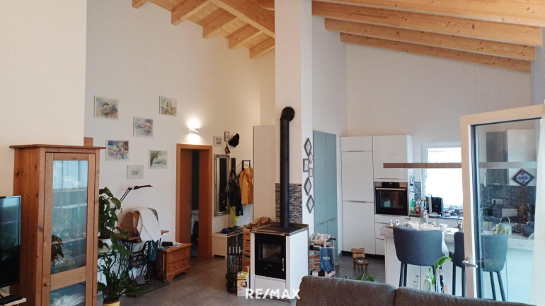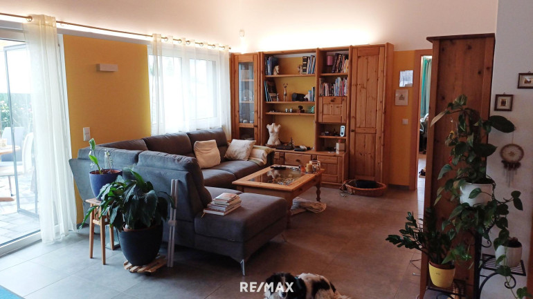 Der offene Wohn-Essbereich mit integrierter Küche und Holzofen bildet das Herzstück des Hauses. Die offene Gestaltung sorgt für ein helles, freundliches Wohnambiente und schafft eine einladende Atmosphäre für gemeinsame Stunden. Zwei weitere Zimmer bieten ausreichend Platz für Schlaf-, Kinder- oder Arbeitszimmer. Ein modernes Badezimmer, separates WC, ein Technikraum sowie ein kleiner Vorraum komplettieren das Raumangebot. Eine weiteres Highlight ist der gemütliche Wintergarten, direkt über das Wohnzimmer zu erreichen.