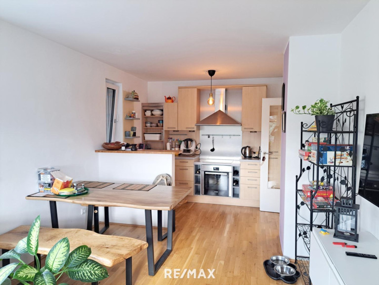 Die Wohnung überzeugt durch ihre durchdachte und funktionale Raumaufteilung. Ein einladender Vorraum führt Sie direkt in den offenen Wohn- und Essbereich, der mit einer modernen Küche ausgestattet ist und Zugang zur gemütlichen Loggia bietet. Hier können Sie entspannte Stunden genießen und dem Alltag entfliehen. Das Schlafzimmer bietet ausreichend Platz und Ruhe, während das Badezimmer mit Dusche sowie ein separates WC mit Abstellfläche zusätzlichen Komfort schaffen.