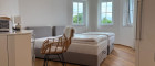 Große Fensterflächen schaffen lichtdurchflutete Wohnräume und eröffnen den Blick in die umliegende Natur. Der großzügige Balkon im Erdgeschoss sowie die weitläufige Terrasse im Untergeschoss laden zum Entspannen und Genießen ein. Hier können Sie sonnige Stunden in ruhiger Atmosphäre verbringen und den Ausblick ins Grüne auf sich wirken lassen.