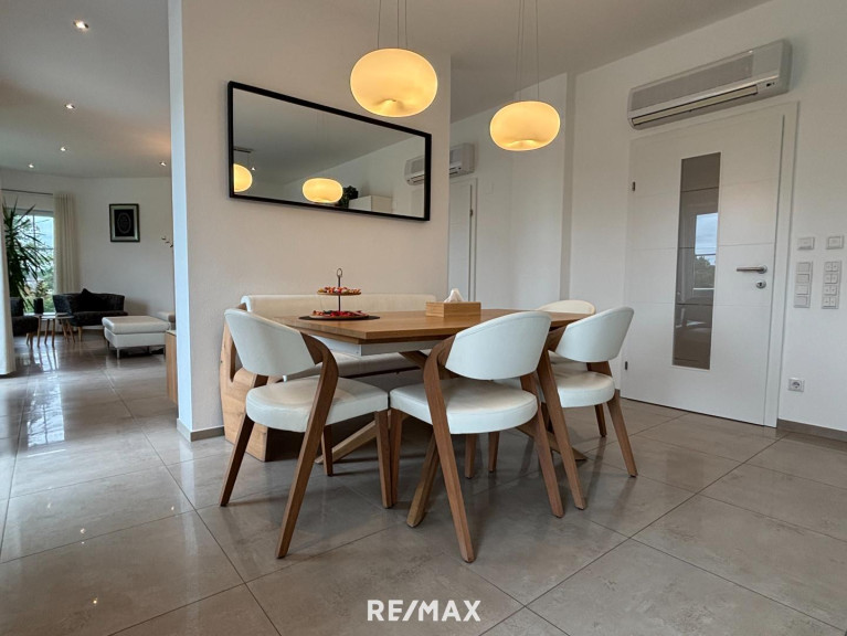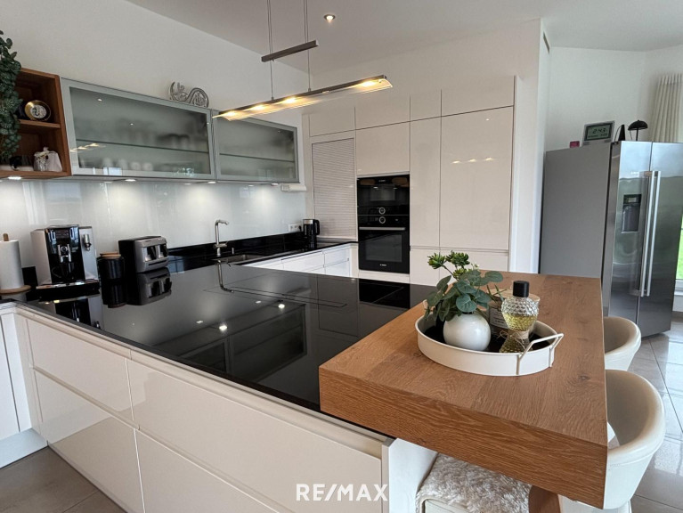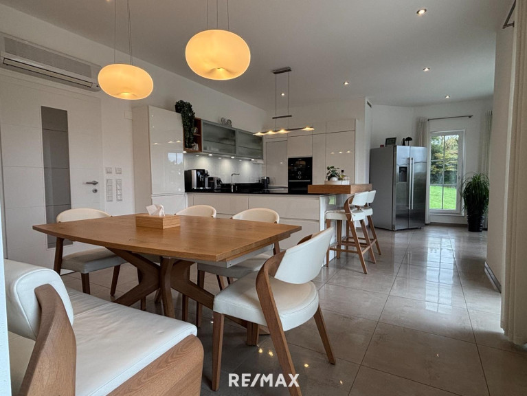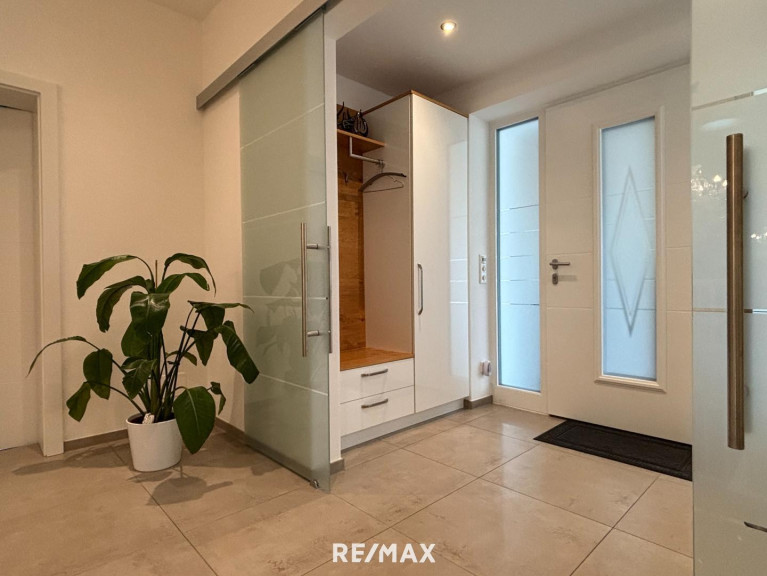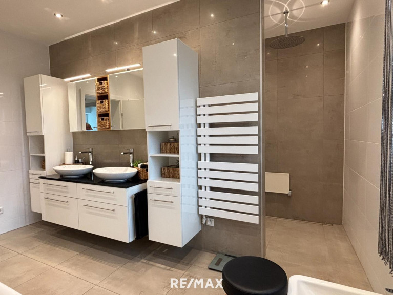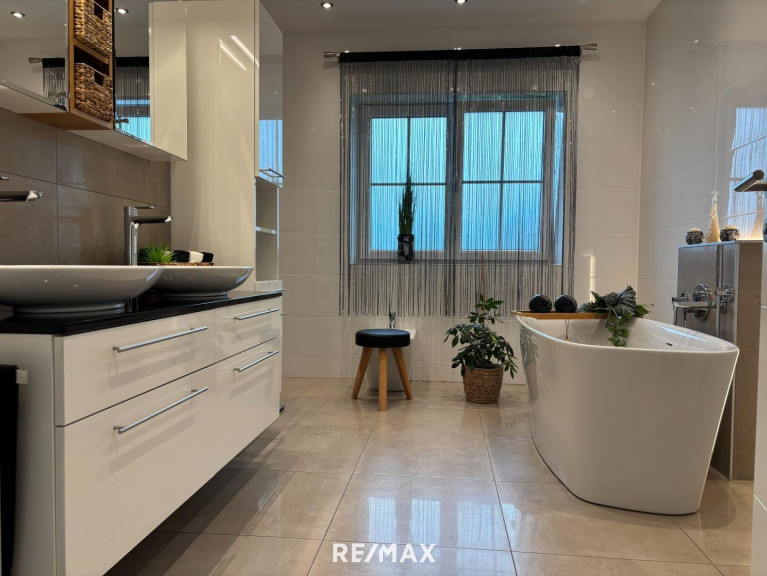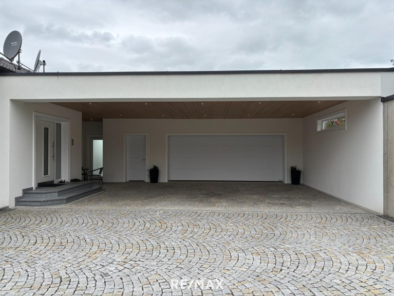 Auch technisch erfüllt die Villa höchste Ansprüche: Eine moderne Wärmepumpe sorgt für effiziente Energieversorgung, während eine Klimaanlage jederzeit für angenehmes Raumklima garantiert. Abgerundet wird das Angebot durch eine Doppelgarage mit eigenem WC und ausreichend Abstellfläche, ein großzügiges Carport, das zusätzlich Platz für drei weitere überdachte Stellplätze bietet sowie weitere 3 - 4 Autoabstellplätze im Freiem mit Umkehrplatz – so steht ausreichend Raum für Fahrzeuge, Fahrräder und Freizeitbedarf zur Verfügung.