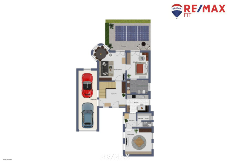 Im Erdgeschoss befindet sich eine einladende Diele mit Garderobenbereich. Von hier aus gelangt man in die Küche mit gemütlicher Essecke, die ausreichend Platz für die ganze Familie bietet. Das Wohnzimmer überzeugt durch seine Helligkeit und den direkten Zugang zum Garten. Zudem stehen ein Schlafzimmer, ein Büro bzw. Kinderzimmer, ein Badezimmer, ein separates WC sowie eine praktische Speis zur Verfügung.