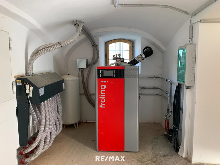 Für behagliche Wärme sorgt eine effiziente Pellets-Fußbodenheizung, die durch einen gemütlichen Kamin ergänzt wird – ideal für entspannte Winterabende. Ein besonderes Highlight ist der eigene, im Jahr 2022 neu errichtete Brunnen, der eine unabhängige Wasserversorgung sicherstellt und die Nachhaltigkeit des Hauses unterstreicht.