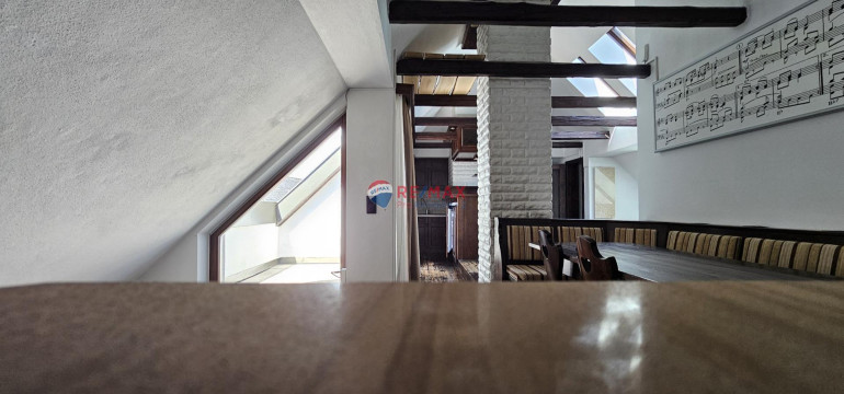 Die Wohnung eignet sich sowohl für Paare, als auch für Singles, die großzügig wohnen möchten und etwas besonderes suchen. Dank der Kombination aus traditionellem Baustil mit Holzbalken und modernen Elementen entsteht ein gemütliches Zuhause.