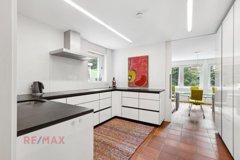 Schon beim Eintreten wird deutlich: Dieses Anwesen ist bis ins kleinste Detail durchdacht. Edle, stilvolle Materialien und eine exklusive Ausstattung prägen das Ambiente. Die moderne Designküche überzeugt durch hochwertige Geräte und Funktionalität. Direkt angrenzend lädt ein stilvolles Esszimmer zum Genießen und Verweilen ein.