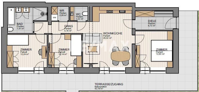 Kochen/ Essen/ Wohnen ca. 26,32m²