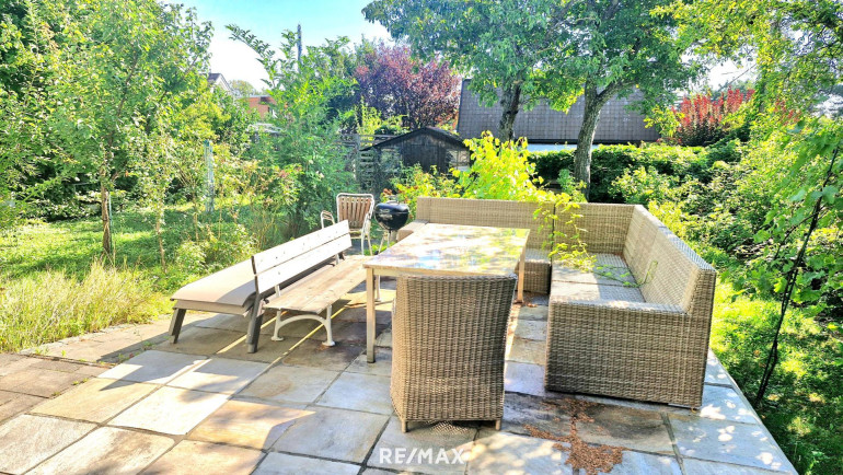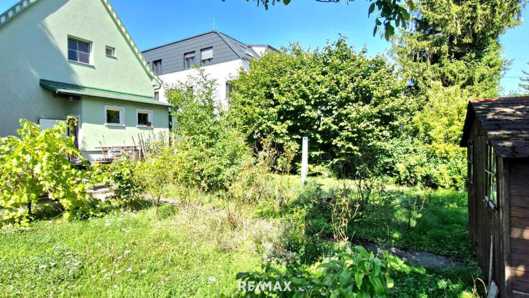 Im hinteren Bereich des Grundstück, uneinsehbar der Zutrittsbereich in das Gebäude, neben der Terrasse mit Blick in den herrlichen Naturgarten mit Obstbaumbestand mit Nussbaum, Marillenbaum, Apfelbaum, Birnenbaum, Hollunder, Weintrauben, Zwetschkenbaum, .... und sicher noch Einiges mehr. Das direkte Gegenüber ist eine Kleingartensiedlung, somit unverbaubar und beständig.