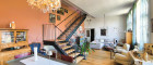 Wohnzimmer - ca. 47 m², Holzboden, direkter Zugang auf den Balkon (ca. 4,5 m²), Treppe zum Dachgeschoß
