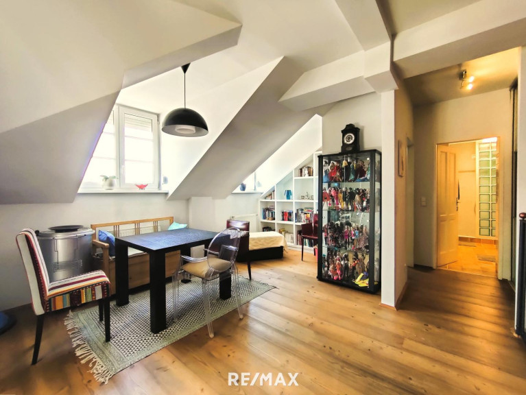 Diese exklusive 4-Zimmer-Maisonettewohnung, im zweiten Stock und Dachgeschoß gelegen, verbindet historischen Charme mit modernem Wohnkomfort. Schon beim Betreten spüren Sie die warme, einladende Atmosphäre. Durch eine Doppelflügeltür betreten Sie das großzügige Wohnzimmer, das Ihnen mit seiner beeindruckenden Raumhöhe und seiner nach Südwesten ausgerichteten Fensterfront ein lichtdurchflutetes Wohnerlebnis bietet. Mit seiner Größe bietet es Ihnen viel Raum zur Verwirklichung Ihrer Wohnträume und vom dazugehörigen Balkon blicken Sie auf das historische Gebäudeensemble und über das westliche Korneuburg. Auch die neben dem Wohnzimmer liegende, vom Vorraum begehbare, hochwertig ausgestattete Küche verfügt über einen eigenen Balkon, der zu entspannten und geselligen Stunden einlädt. Eine separate Gästetoilette vervollständigt das Raumangebot auf dieser Wohnebene.