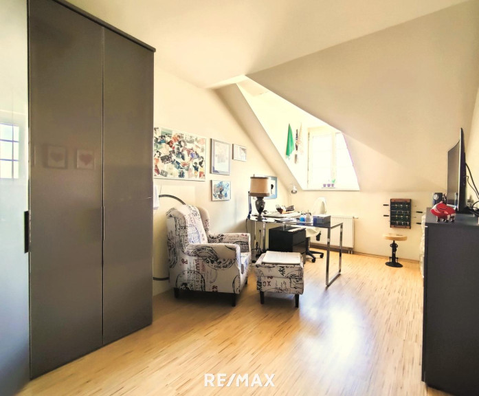Über eine elegante Treppe gelangen Sie vom Wohnzimmer auf die im Dachgeschoß liegende zweite Wohnebene, die sich somit ideal als privater Rückzugsbereich gestalten lässt. Hier gelangen Sie von der Wohndiele, die z. B. als gemütliche Leseecke genutzt werden kann, zu drei weiteren Zimmern, die Sie ganz nach Ihren individuellen Wünschen und Bedürfnissen gestalten können, sowie ins Badezimmer. Von hier aus gelangen Sie auch auf die Dachterrasse. Mitten in Korneuburg finden Sie hier einen ganz privaten Rückzugsort, an dem Sie im Freien die Ruhe genießen können. Diese Terrasse macht eine bereits außergewöhnliche Wohnung zu einem einzigartigen Juwel, das schon bald Ihres sein kann.