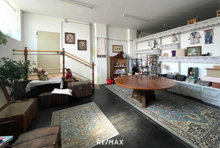 - Erdgeschoss: Geschäftslokal (ca. 12 m²), Werkstatt/Hobbyräume (ca. 370 m²), Garage & Carport (3 Stellplätze)