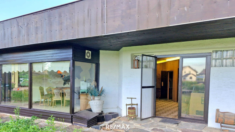 Dzt gibt es 8 Räume + Küche + Bad + WC, inkl. Wintergarten. Zusätzlich noch die Garage, einen Abstellraum, und eine Sauna.
