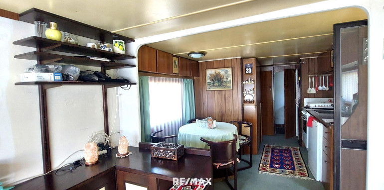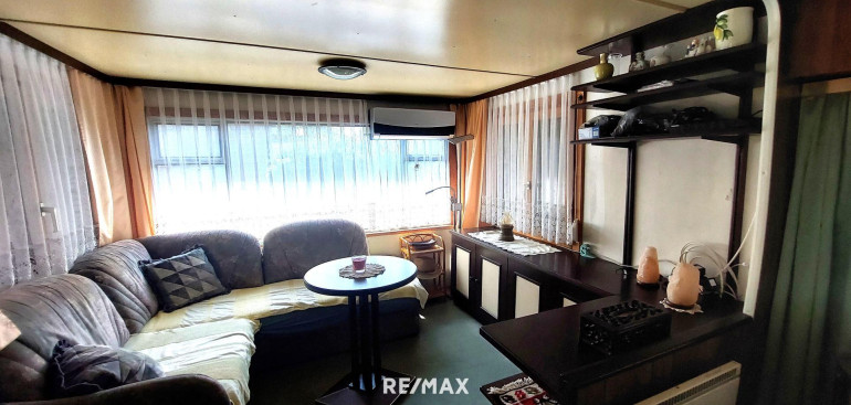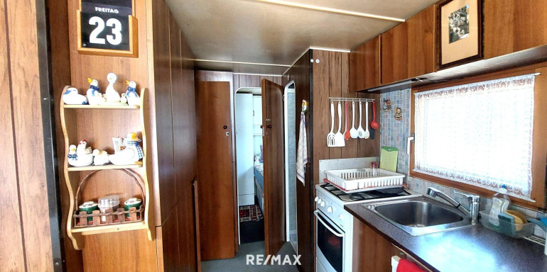 Das Wohnmobil mit einer Wohnfläche von ca. 39m² auf einer Doppelparzelle- ca 150 m² -verfügt über einen Wohnraum mit einem ausziehbaren Sofa, einem Essbereich und einer Küchenzeile. Die Küche mit Gasherd, Mikrowelle und Kühlschrank ist komplett ausgestattet. Dazu ein Schlafzimmer mit zwei Einzelbetten,- die Betten verfügen über neuwertige Matratzen-, ein Badezimmer mit Infrarotheizkörper, WC , eine Duschkabine daneben im Zubau, wo zusätzlich noch ein Raum für Aufbewahrung sowie eine Kühl- Gefrierkombination vorhanden ist. Dinge für den täglichen Alltag wie Staubsauger, Bettwäsche und Handtücher ergänzen das Ganze.