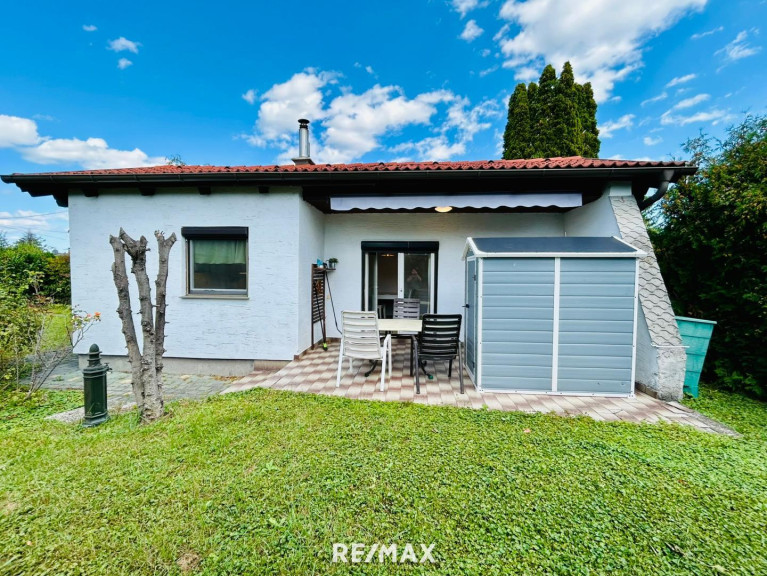 Der Bungalow mit ca. 34m² Wohnfläche steht auf einem ca. 444m² großem Mietgrundstück (Superädifikat) der Gemeinde Steinbrunn.