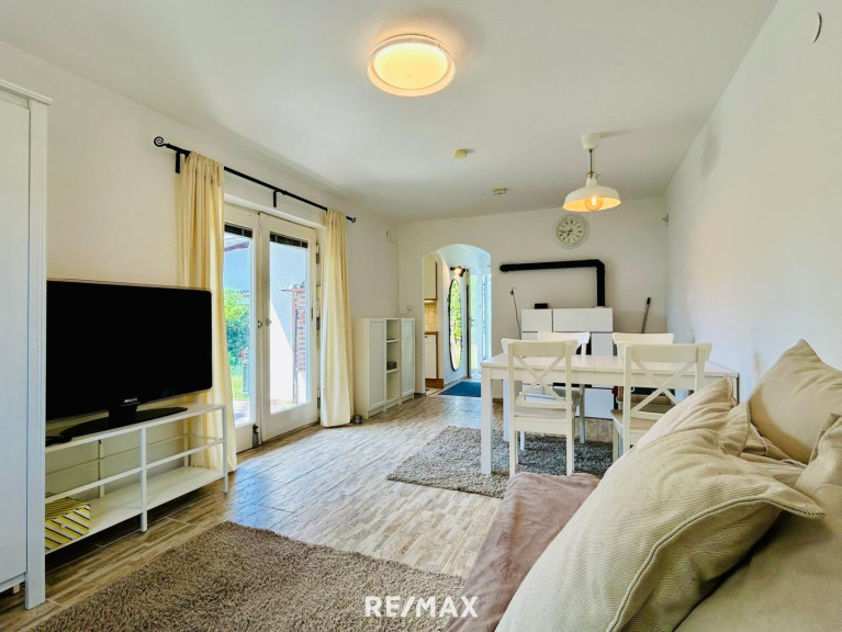 Das Haus bietet Ihnen ein Wohnzimmer mit angrenzender Sonnenterrasse, eine kleine Küche, Bad mit Dusche, WC und ein kleines Schlafkabinett.