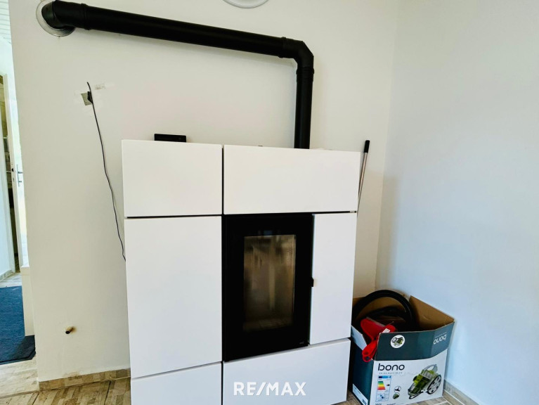 Im Wohnzimmer steht ein neuer Pallets-Ofen mit Vorratsspeicher, der das Haus mit wohliger Wärme versorgt. Die anderen Räume werden zusätzlich elektrisch beheizt.