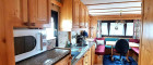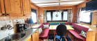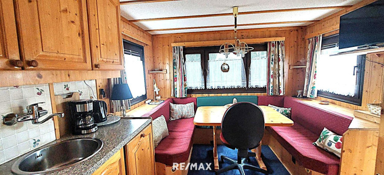 Das Wohnmobil mit einer Wohnfläche von ca. 34m² verfügt über ein Wohn-Esszimmer mit einer Küchenzeile, einem Schlafzimmer, einem Badezimmer mit Dusche und WC . Eine ca.9 m² große überdachte Terrasse mit Plissée-Verbau sorgt für einen angenehmen Aufenthalt . Im Garten gibt es eine Gartenküche mit Strom – und Wasseranschluss, einen Gartenbrunnen, eine Solardusche mit 60 Liter Wasserspeicher ,eine Werkstatt und einen kleinen Geräteschuppen. Das Mobilheim steht auf einer Parzelle mit ca 185 m².