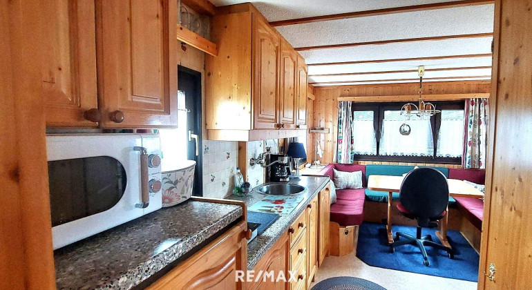 Eine Klimaanlage sorgt für Kühle an heißen Sommertagen. Das Mobilheim wird komplett ausgestattet angeboten, ebenso die Werkstatt sowie der Gartenschuppen wird mit dem gesamten Inventar abgegeben, darunter auch der Rasenmäher sowie ein Dampfstrahler.