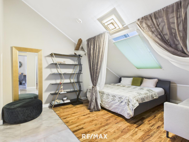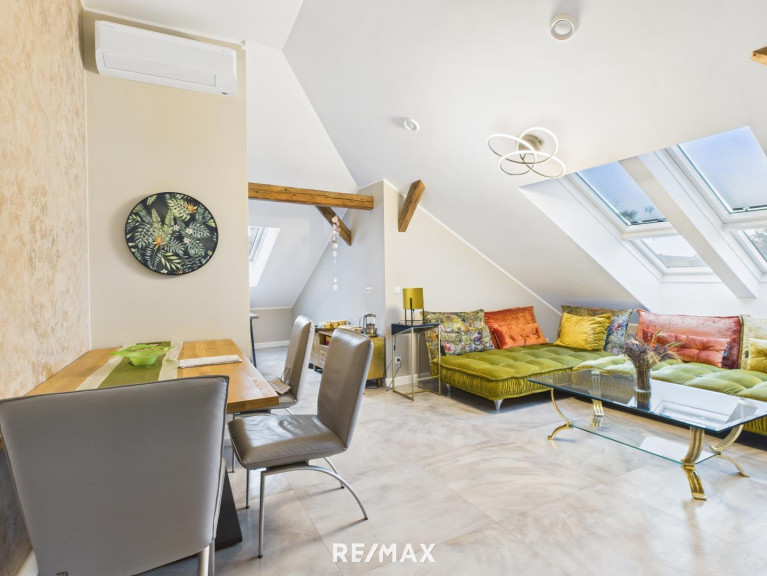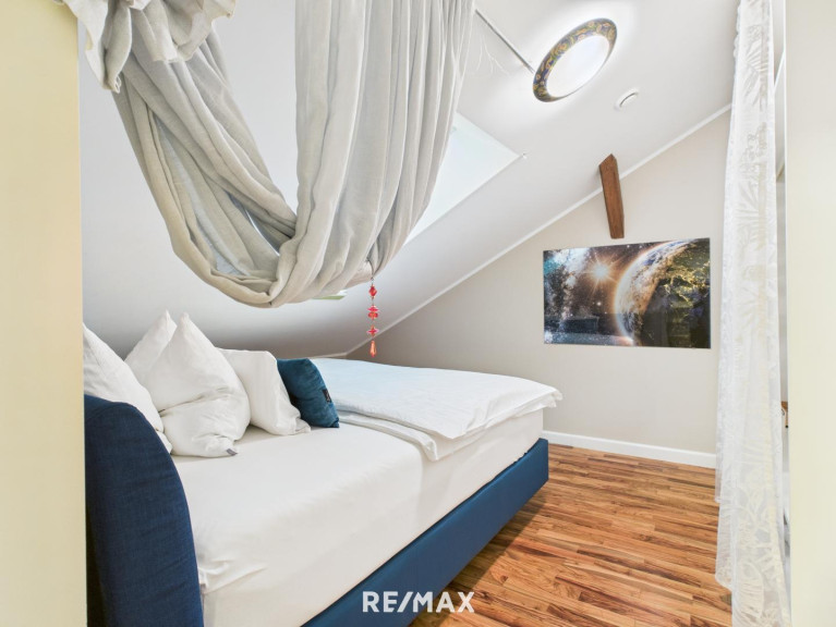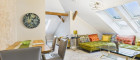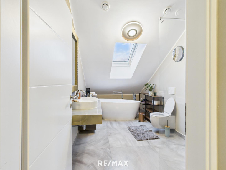 - Dachgeschoss: moderne Wohnung mit zwei Schlafzimmern, großem Wohnzimmer und Bad mit Badewanne