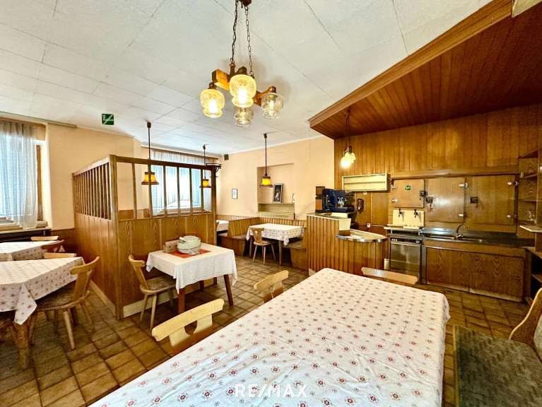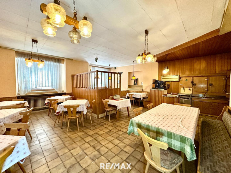 Das Gebäude wurde ehemals als Gaststätte mit Frühstückspension und Fremdenzimmervermietung genutzt. Im Erdgeschoss befindet sich ein Gastraum mit ca. 60 Sitzplätzen sowie eine weitere Fläche für ca. 24 Sitzplätze, diverse Nebenräume und zwei Fremdenzimmer. Insgesamt verfügt das Objekt über rund 29 Zimmer, die sich im Erdgeschoss, 1. Obergeschoss und 2. Obergeschoss auf Doppelzimmer, Einzelzimmer und Zweibettzimmer aufteilen.