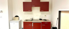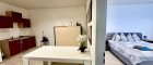 Die Ausstattung umfasst ein gemütliches Doppelbett, eine voll ausgestattete Küche, einen Essbereich sowie ein gepflegtes Badezimmer – perfekt für eine kleine, aber komfortable Unterkunft.