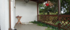 Ein weiterer Ausgang führt in den hinteren Gartenbereich mit einer praktischen Holzhütte, die sich ideal zur Aufbewahrung von Gartengeräten eignet.