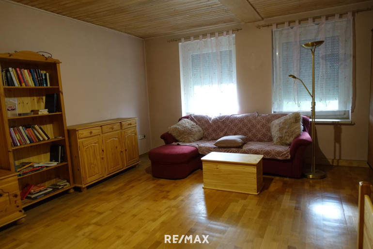Das großzügige Zubau-Wohnzimmer ist lichtdurchflutet und bietet direkten Zugang auf die Terrasse und in den Garten, der zum Verweilen und Auftanken einlädt.