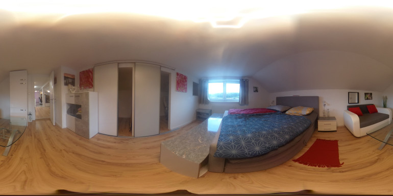 Ein Schlafzimmer mit zwei begehbaren Schrankräumen
