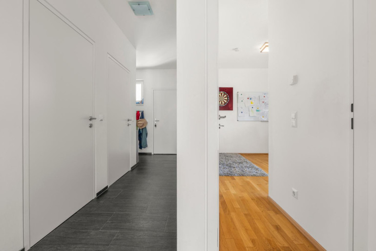 Mit 89,70 m² Wohnfläche, 3 Schlafzimmern, einem offenen Wohn-/Essbereich mit Küche und einem 23,40 m² großen Balkon mit Panoramablick genießen Sie höchste Lebensqualität. Zwei Kellerabteile (gesamt ca. 19 m²) sowie ein Carport- und ein PKW Freiplatz runden das Angebot ab.