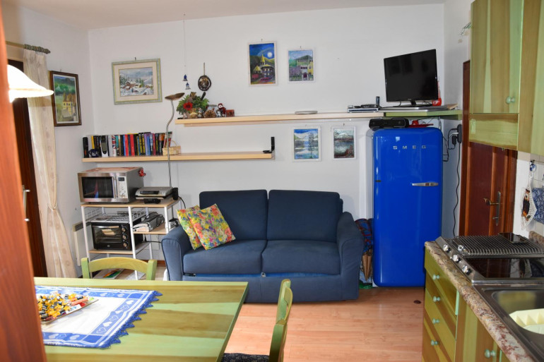 Vorraum im Eingangsbereich, 1 Wohn-Essküche mit Ausgang zum Balkon, kleiner Vorraum, 1 Bad mit Dusche und WC, Bidet und Waschbecken, 1 kleines Schlafzimmer mit Stockbetten sowie 1 Schlafzimmer mit Ausgang zum Balkon.