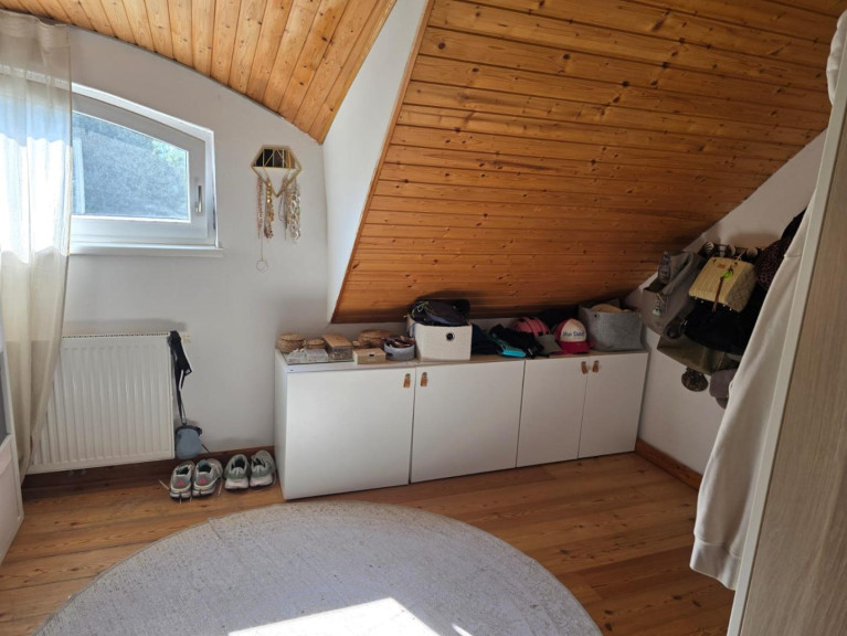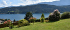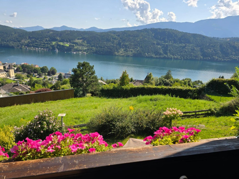 Eigener Eingang über eine überdachte Außentreppe. Südbalkon mit Panorama- und Seeblick (nebelfrei). 2 Autoabstellplaätze neben der Außenstiege nordseitig des Hauses.