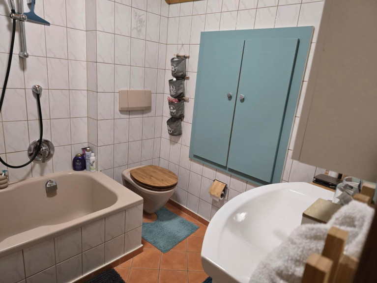 - Schlafzimmer Ost mit angrenzendem Bad (Badewanne) und WC, elektr. Warmwasserboiler