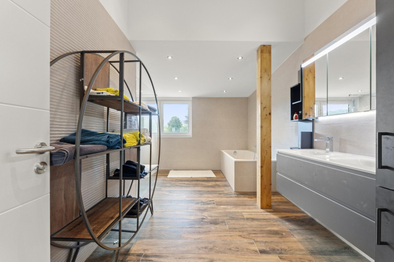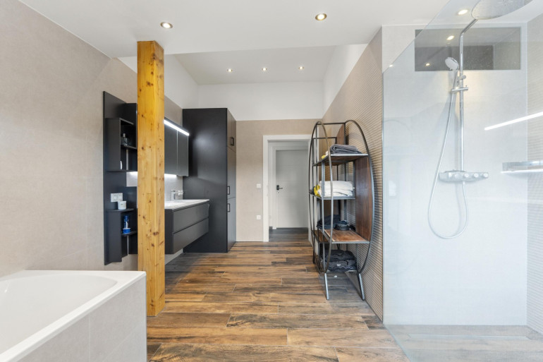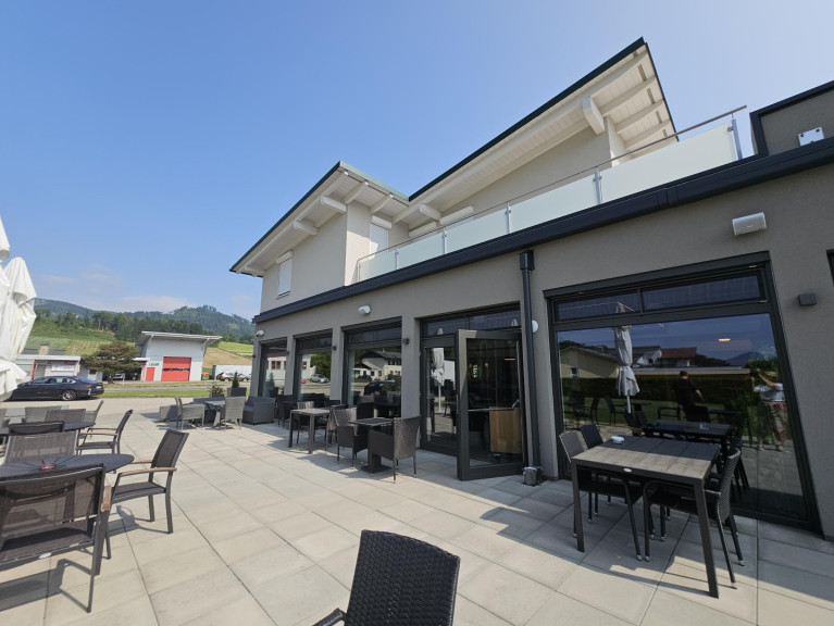 Kernsanierung und Neubau: 2023/2024 wurde die Immobilie umfassend kernsaniert. Mehr als 200 m² Neubau ergänzen die bisherigen Funktionsbereiche (Küche, Nebenräume, Wohnung im OG). Vom Bauzustand her entspricht der Großteil des Gebäudes dem Neubaustandard; das Erdgeschoss war bis vor Kurzem als Restaurant in Betrieb und ist vollständig betriebsbereit. Das Obergeschoss wurde privat genutzt und bietet zwei großzügige Wohneinheiten mit Dachterrassen.