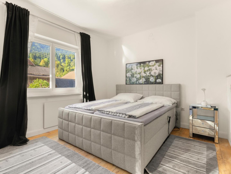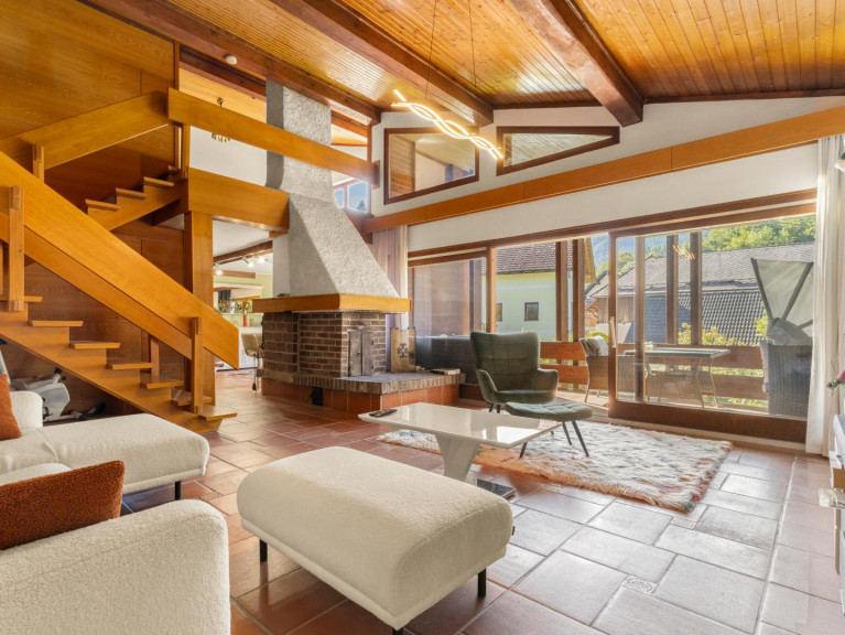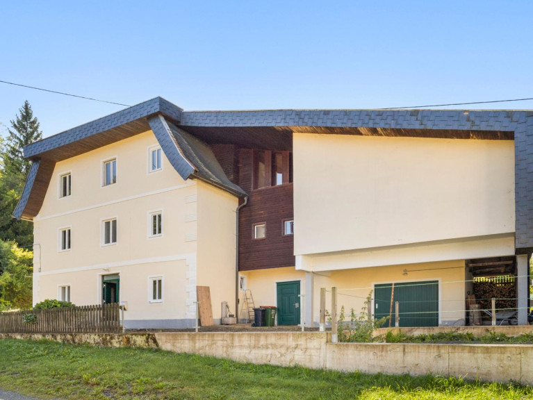 Die ehemalige Villa des Kärntner Malers Franz Wiegele befindet sich in Feistritz an der Gail in ländlicher Dorfstruktur. Wiegele (1887-1944) gehörte zu den Wegbereitern der modernen Malerei in Österreich. Er war einer der vier Mitglieder des so genannten Nötscher Kreises. Diese beeindruckende Villa besteht aus einem ursprünglichen Teil, der aus dem Jahr 1915 stammt. Im Osten ist ein großformatiges Mosaik des Malers Franz Wiegele mit Signatur angebracht. In den 70 er Jahren wurde das Haus erweitert, wodurch zusätzlich Wohnraum geschaffen wurde. Beispielsweise entstand das große Wohnzimmer im Obergeschoß mit offenem Kamin und offener Galerie. Die große Raumhöhe erzeugt ein einzigartiges Wohngefühl. Der Zustand des Gebäudes ist dank laufender Sanierungs- und Renovierungsmassnahmen sehr gut. Das betrifft sowohl die Fassade, das Dach, die neuen Fenster als auch die sehr gepflegten Innenräume. Beheizt wird das Haus mit zwei Kachelöfen, einem Schwedenofen und mit komfortablen Elektro-Paneelen.