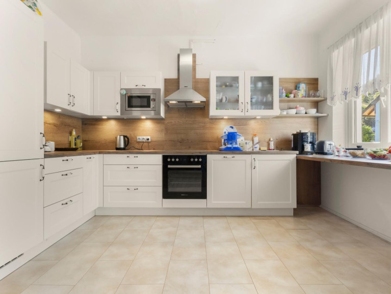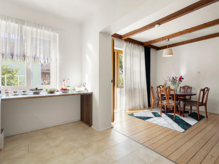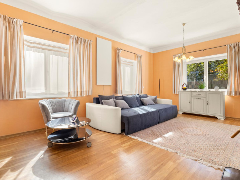 Die Villa besteht aus einer schönen und gemütlichen Wohnung im Erdgeschoss, die aktuell bei Urlaubsgästen sehr beliebt ist. Zu dieser Wohnung mit einer Fläche von 63 m² gehört ein geräumiges Wohn-Esszimmer, ein Schlafzimmer und ein Esszimmer, eine kleine Küche sowie ein schönes Bad.