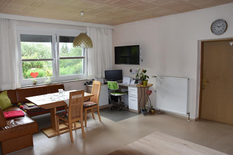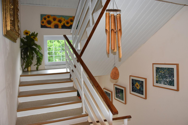 Im Obergeschoss befinden sich 1 kl. Ferienwohnung südseitig mit Balkon, 1 kl. Ferienwohnung ostseitig ohne Balkon, 2 Gästezimmer mit DU und WC (eines davon mit Balkon) sowie noch 3 Zimmern, die zurzeit privat genutzt werden.