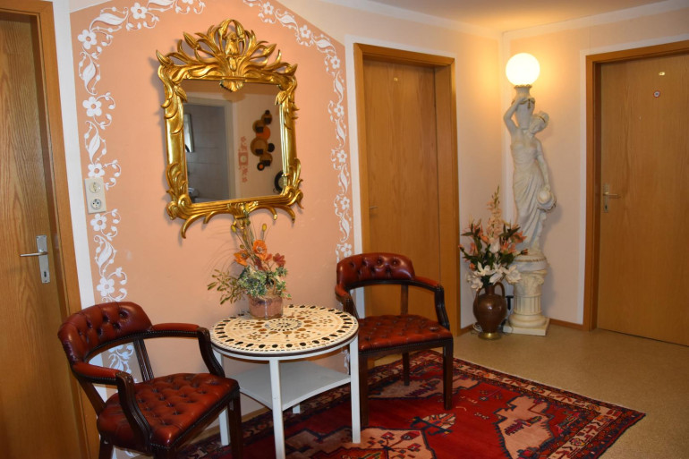 Im Haus befinden sich insgesamt 12 nette Schlafzimmer mit Dusche und WC (davon sind 2 Appartements im Obergeschoss und 1 Ferienwohnung mit 3 Schlafzimmern im Dachgeschoss inkludiert). Alle Zimmer im OG, die nach Süden ausgerichtet sind, haben Balkone mit schönem Blumenschmuck.